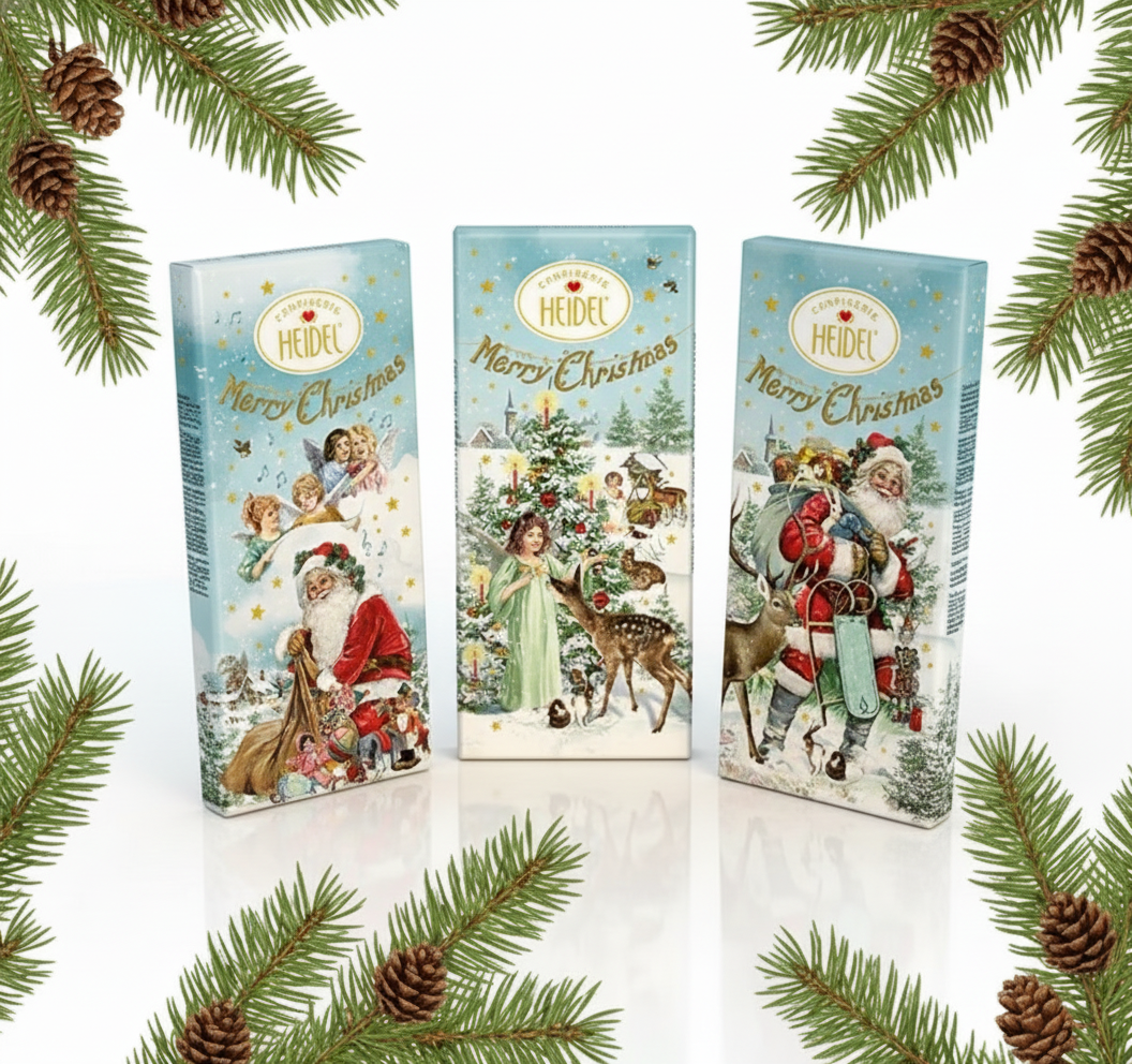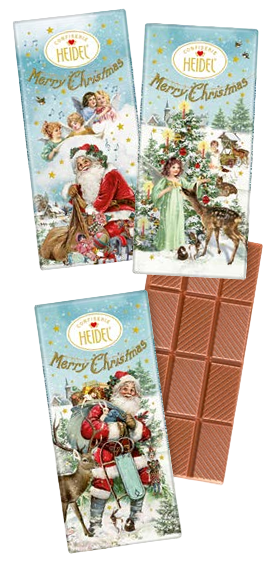 Fun Christmas chocolate bar in Heidel’s "Angel's nostalgia" design.