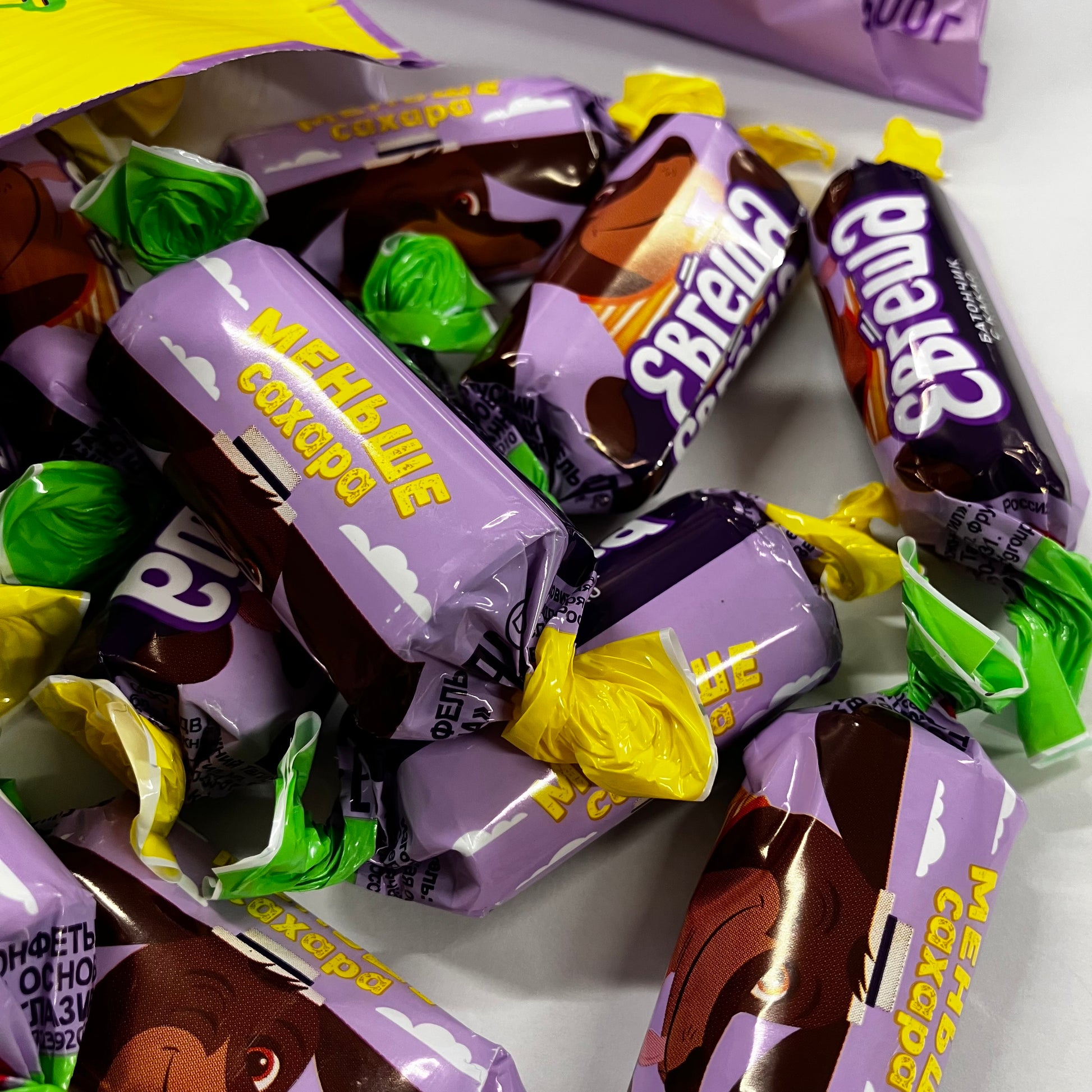 ロシアやその周辺の国々で人気のチョコレート菓子”バトンチキ”です。大手製菓会社KDVのベストセラー商品です。今回、レシピをリニューアル。砂糖を少なめにし、添加物も必要最低限に抑えました。着色料・保存料不使用です。