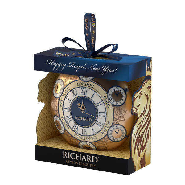 華やかなゴールドの時計型缶に、上質なセイロン紅茶の茶葉を詰めた特別なクリスマス限定アイテム。立体的なデザインと繊細な装飾が施された缶は、高級感と遊び心を兼ね備え、インテリアとしても存在感を放ちます。付属のリボンでクリスマスツリーのオーナメントとして飾れば、ホリデーシーズンをより一層華やかに演出。香り高くコク深い紅茶とともに、贈り物にも自分へのご褒美にも最適な逸品です。