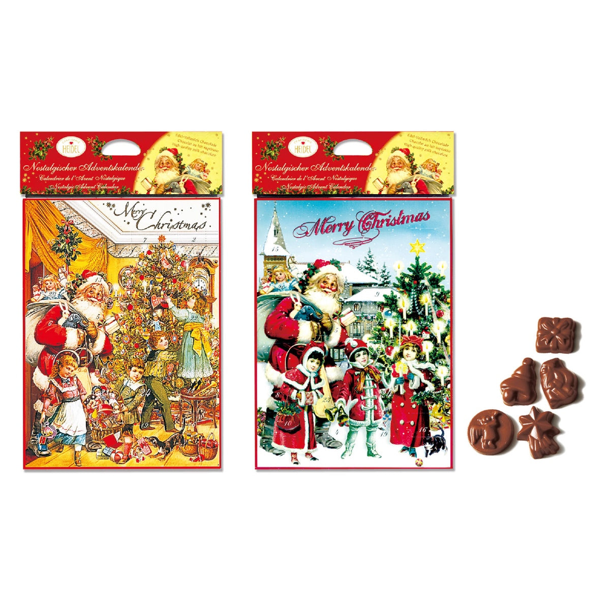 現在私たちがよく目にする印刷されたアドベントカレンダーは、20世紀初頭に人気が高まりました。このノスタルジア アドベントカレンダーの美しいアートワークには、まさに当時のビクトリア朝様式の精緻な意匠が反映されています。それぞれの窓には、クリスマスを彩る素敵な形の上質なドイツチョコレートが入っています。クリスマスまでのカウントダウンに、これ以上に美味しい方法は考えられません!